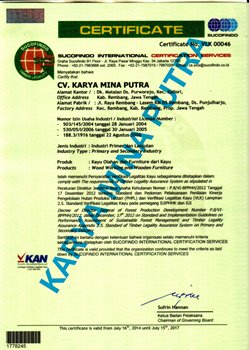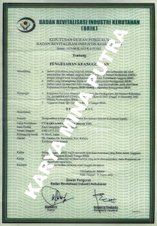 • Pengakuan sebagai Pedagang Kayu Antar Pulau Terdaftar (PKAPT) Nomor : Nomor. 98/PDN/5/2007 Tanggal 31 Mei 2007 atas nama CV. Karya Mina Putra berlaku sampai dengan tanggal 28 Mei 2012.