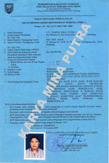 • Surat Izin Usaha Perdagangan (SIUP) Nomor. 47-04/11.27/PM/VIII/2007. Tanggal 20 Agustus 2007. Atas nama CV. Karya Mina Putra.